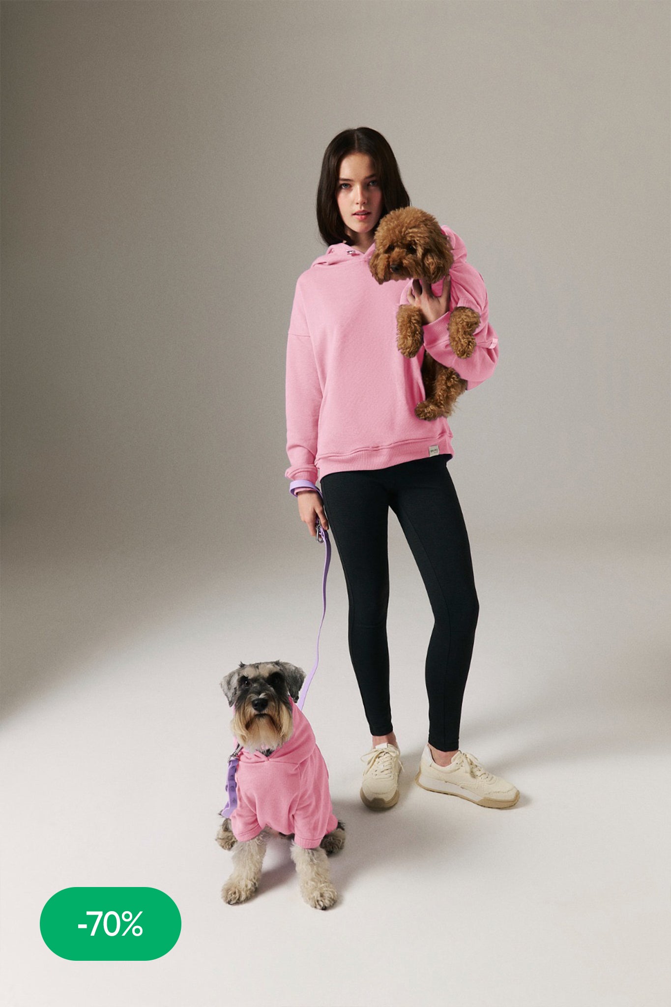 Köpek: Yumuşacık pamuklu üç iplik kumaştan, manşetleri ve etek ucu ribanalı, kolay ve rahat yürüyüşler için tasma deliği bulunan, rahat kesim kapüşonlu sweatshirt