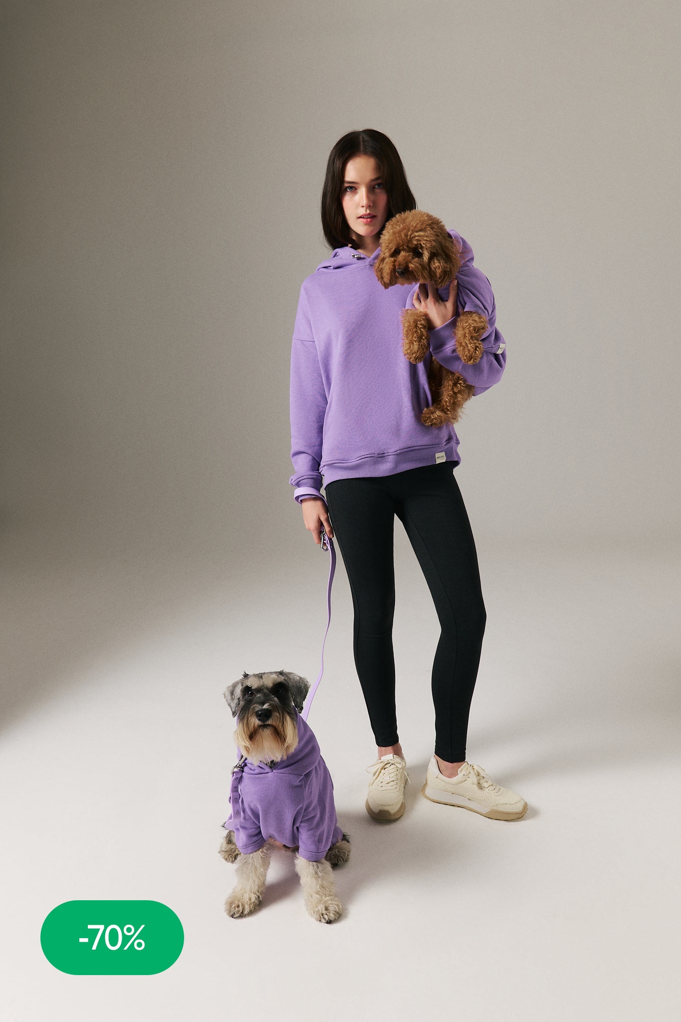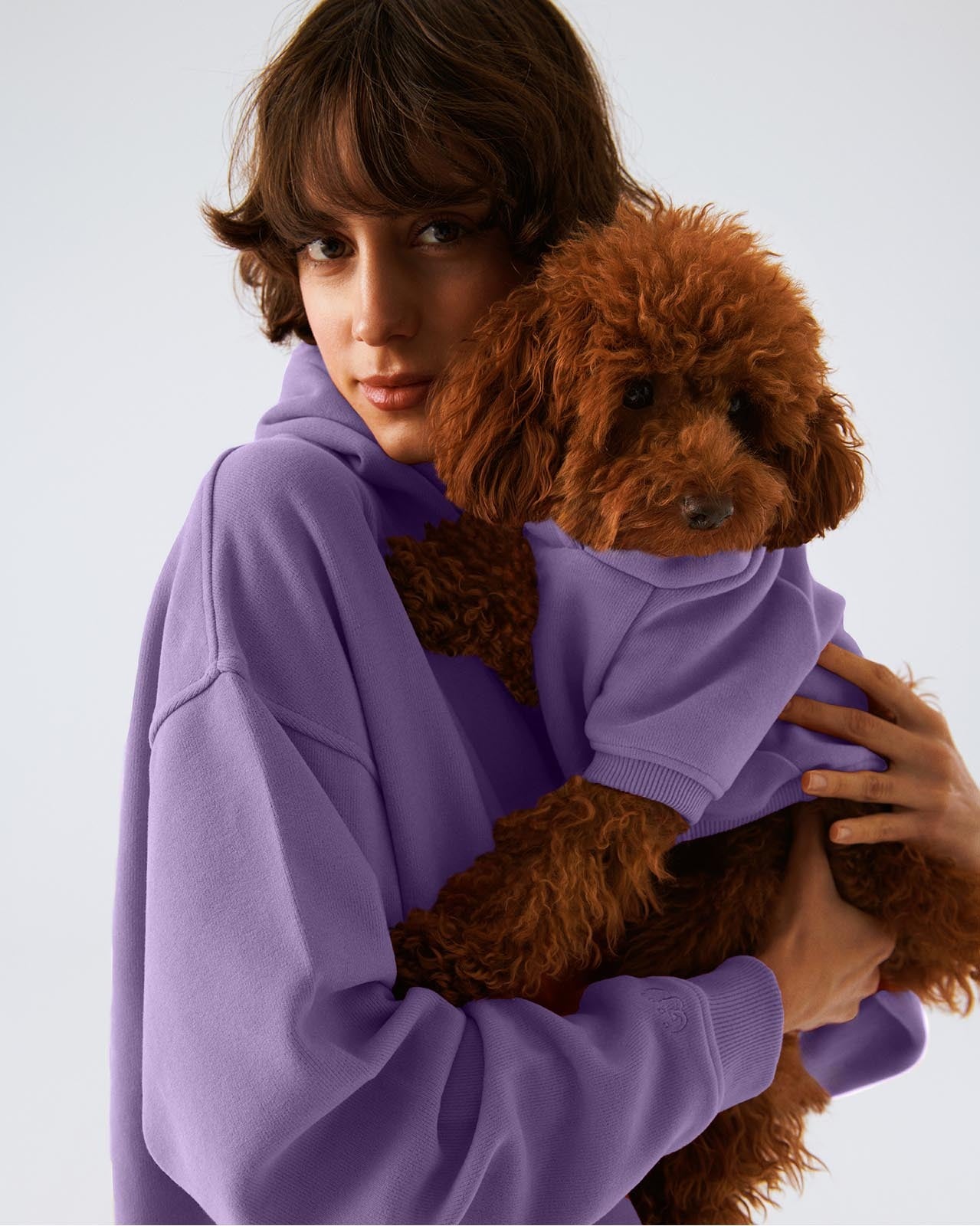 Köpek: Yumuşacık pamuklu üç iplik kumaştan, manşetleri ve etek ucu ribanalı, kolay ve rahat yürüyüşler için tasma deliği bulunan, rahat kesim kapüşonlu sweatshirt