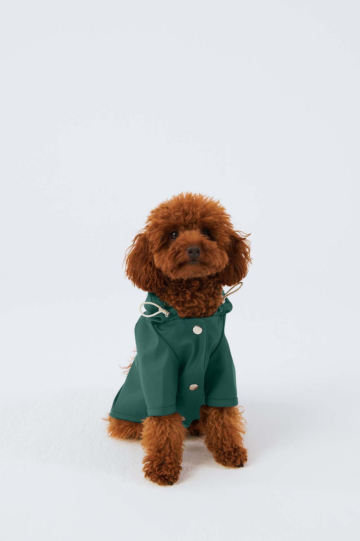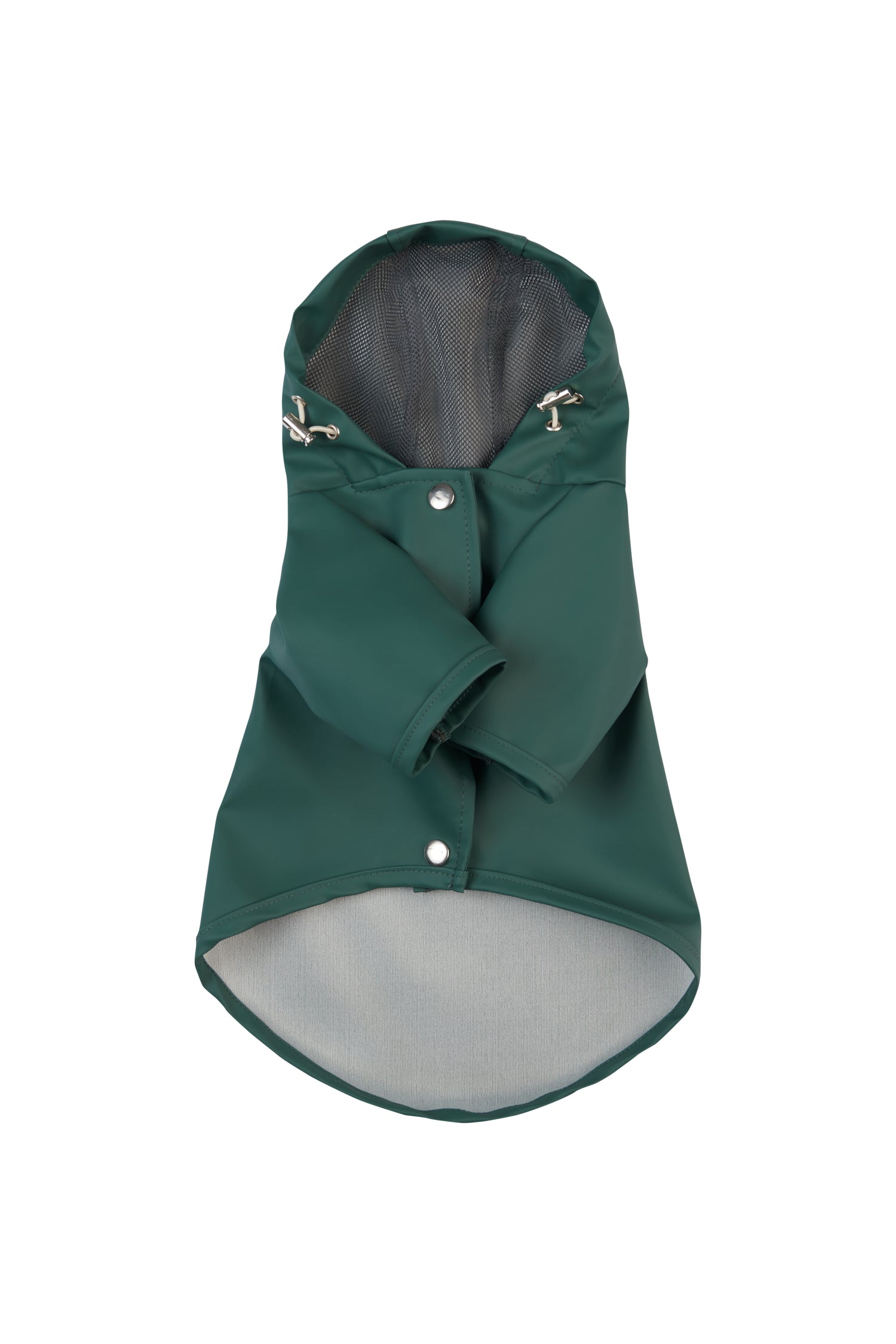 Köpek: Mat ve pürüzsüz bir yüzeye sahip suya dayanıklı hafif kumaştan üretilmiş, kapüşonu lastik ve stoperle ayarlanabilen, önü çıtçıtlı, kolay ve rahat yürüyüşler için tasma deliği bulunan astarsız rahat kesim yağmurluk