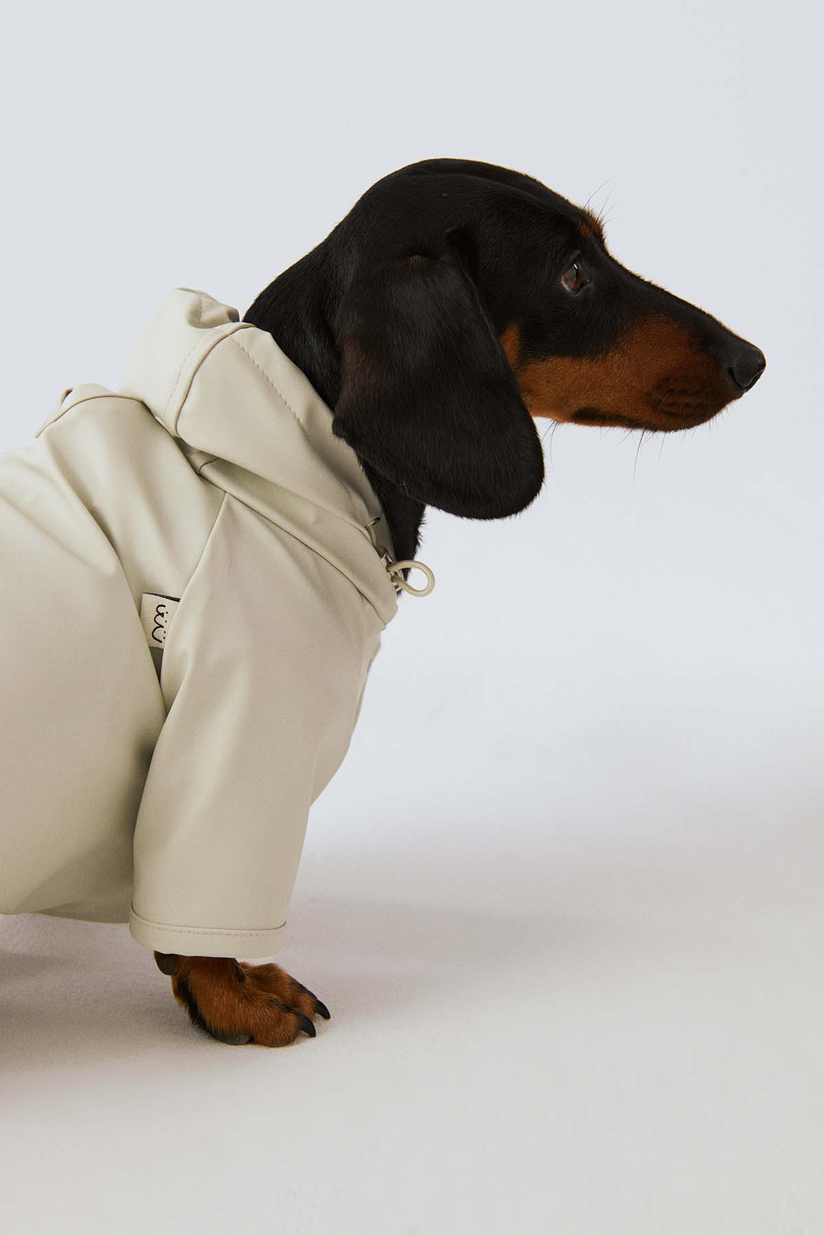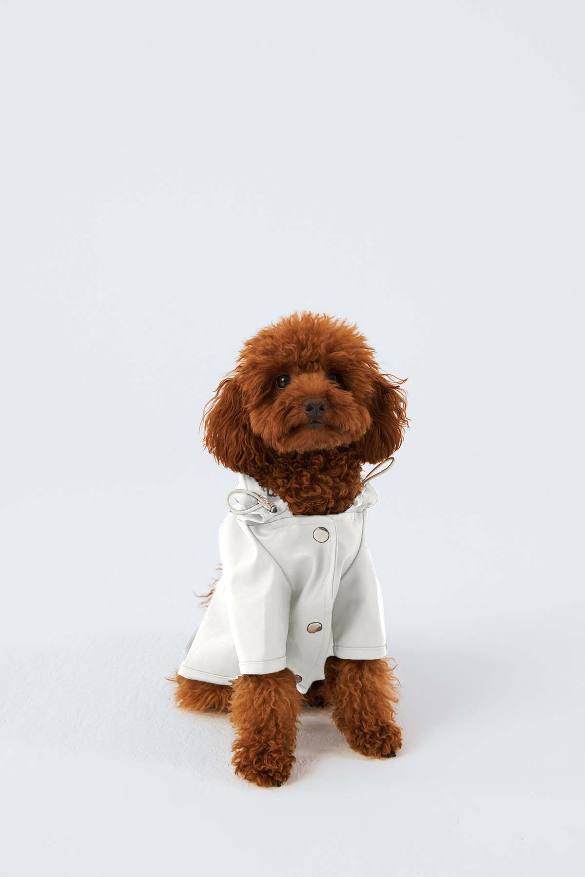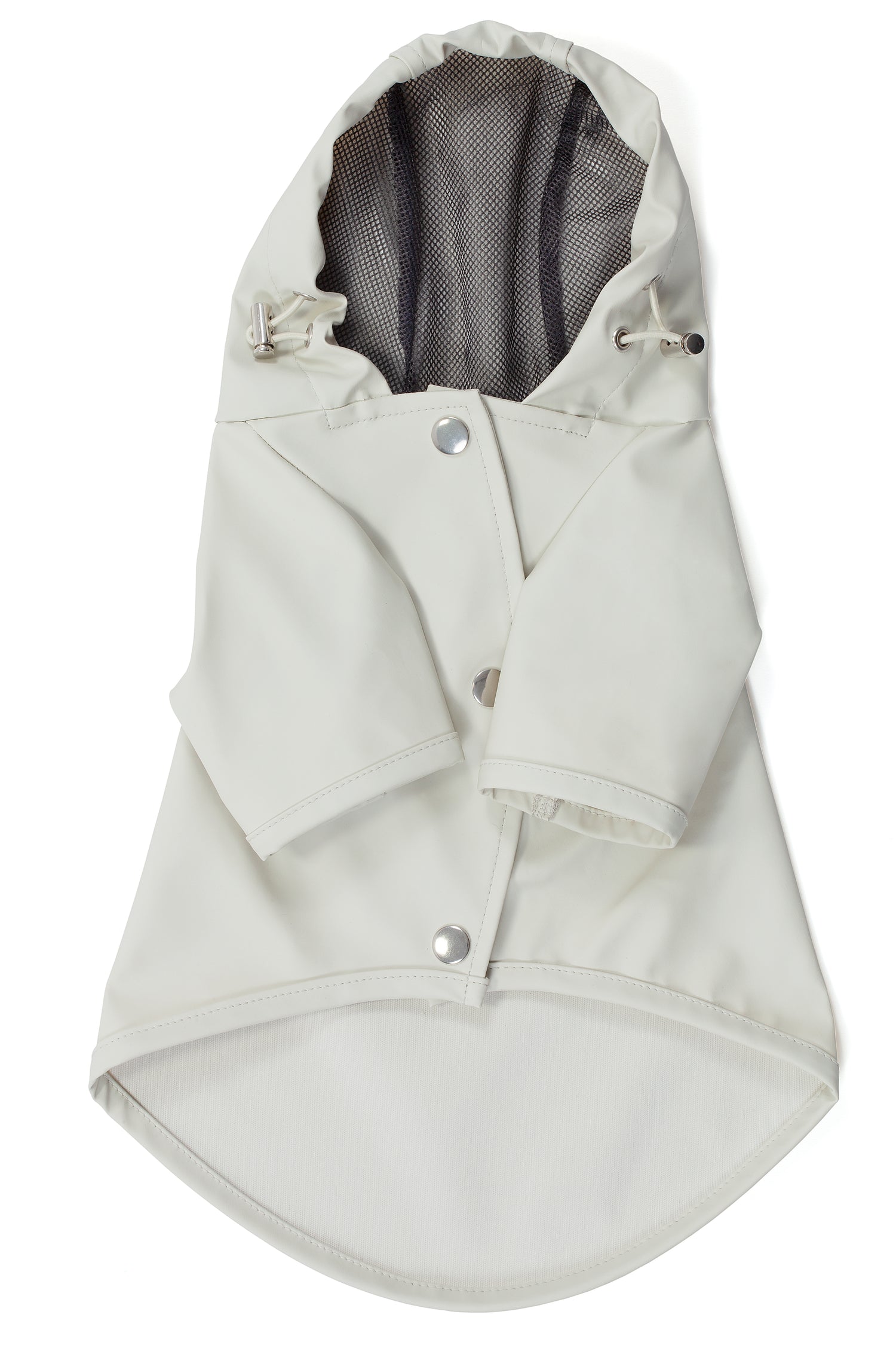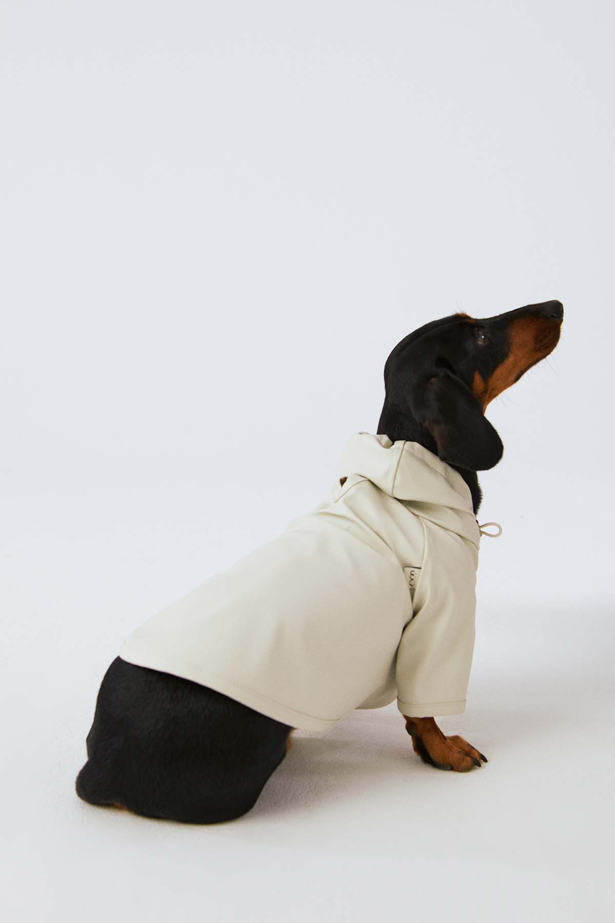 Köpek: Mat ve pürüzsüz bir yüzeye sahip suya dayanıklı hafif kumaştan üretilmiş, kapüşonu lastik ve stoperle ayarlanabilen, önü çıtçıtlı, kolay ve rahat yürüyüşler için tasma deliği bulunan astarsız rahat kesim yağmurluk