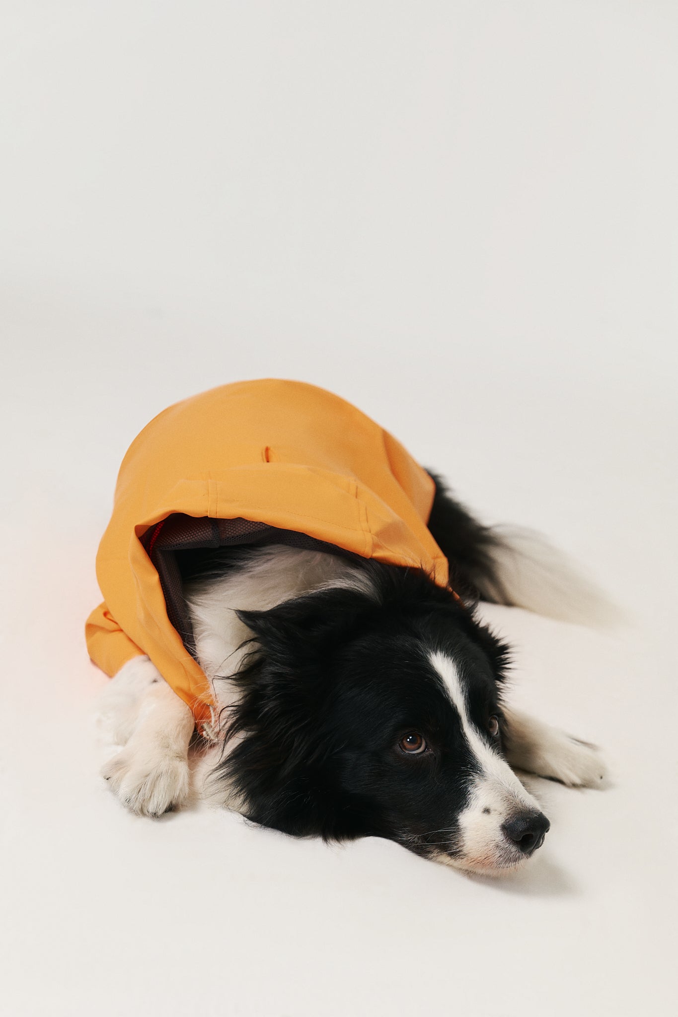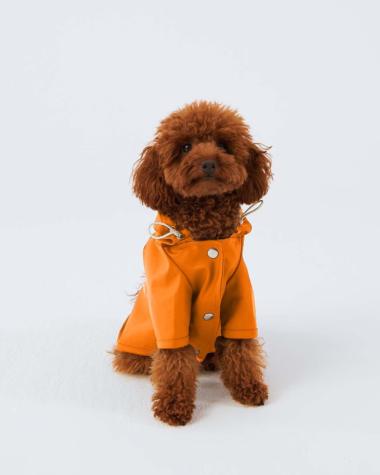 Köpek: Mat ve pürüzsüz bir yüzeye sahip suya dayanıklı hafif kumaştan üretilmiş, kapüşonu lastik ve stoperle ayarlanabilen, önü çıtçıtlı, kolay ve rahat yürüyüşler için tasma deliği bulunan astarsız rahat kesim yağmurluk