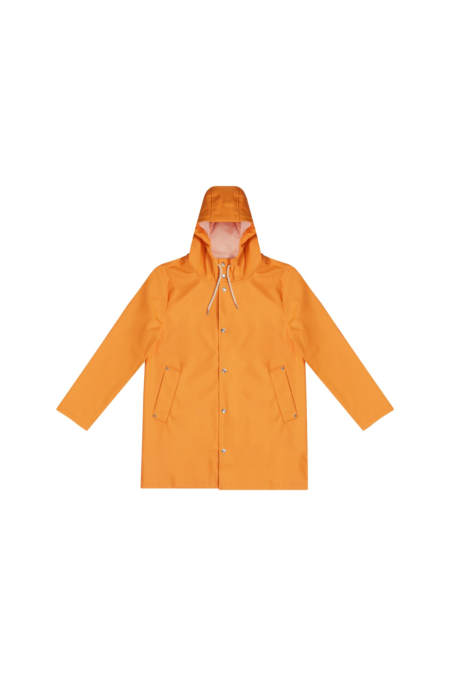 İnsan: Mat ve pürüzsüz bir yüzeye sahip suya dayanıklı hafif kumaştan üretilmiş , kol altında hava sirkülasyonu için gizli açıklıklar bulunan, kapüşonu büzgü bağlı, çapraz ön cepli, önü çıtçıtlı rahat kesim unisex yağmurluk
