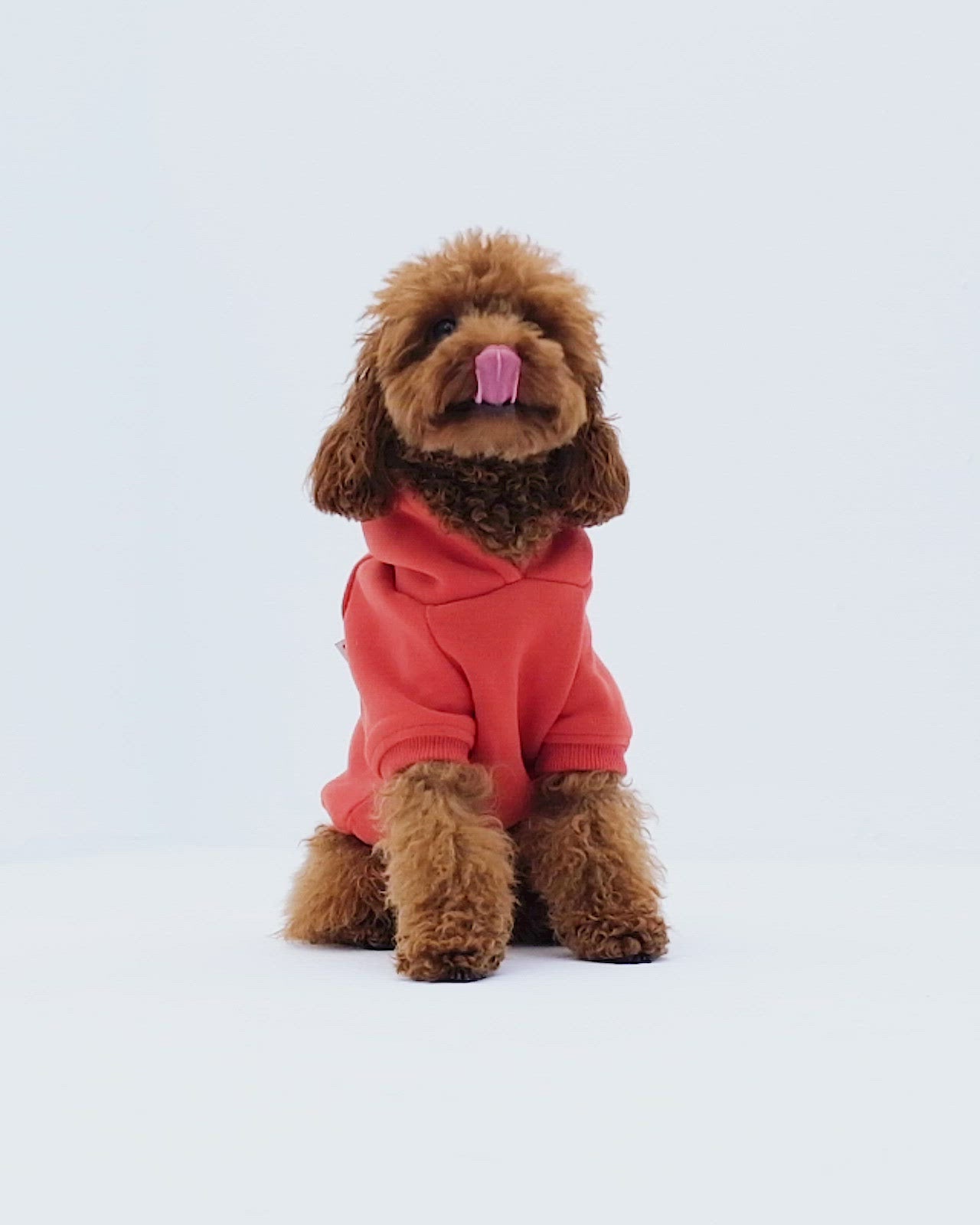 Soft jersey fabric with outer soft and velvet-like feeling, ribbing at cuffs & hem, harness keyhole for easy and comfortable walks, relaxed fit hoodie