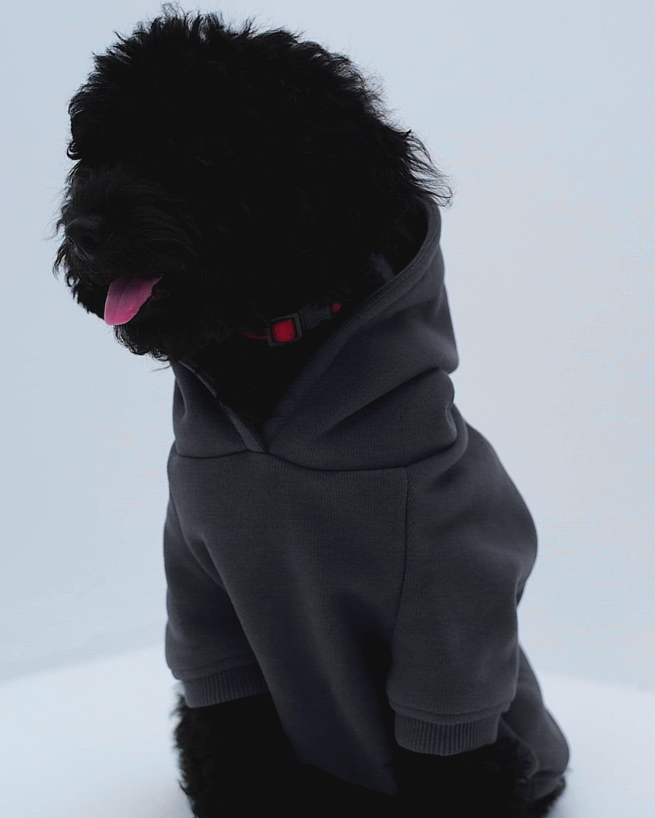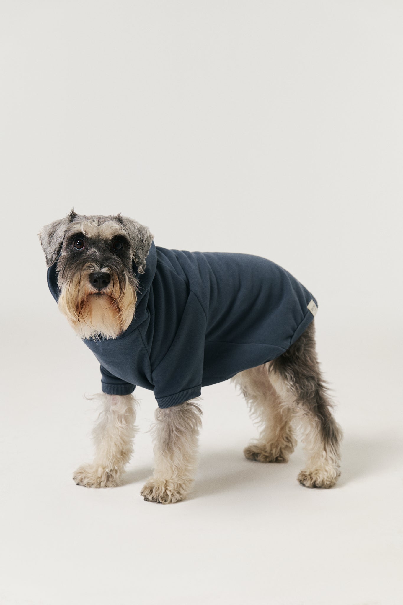 Soft jersey fabric with outer soft and velvet-like feeling, ribbing at cuffs & hem, harness keyhole for easy and comfortable walks, relaxed fit hoodie