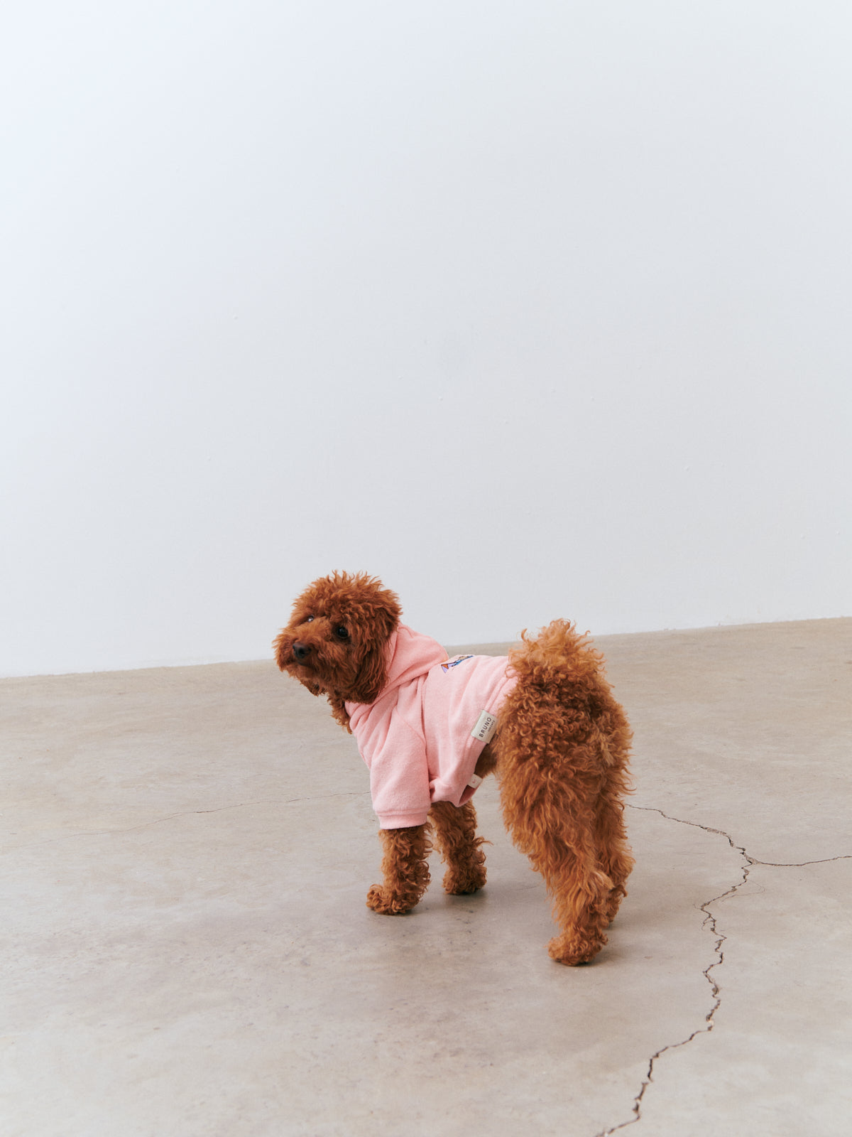Soft towel fabric with outer soft and velvet-like feeling, ribbing at cuffs & hem, harness keyhole for easy and comfortable walks, relaxed fit hoodie