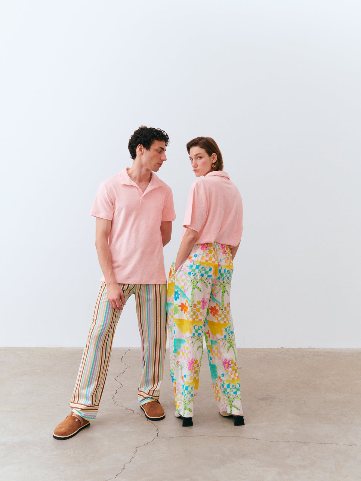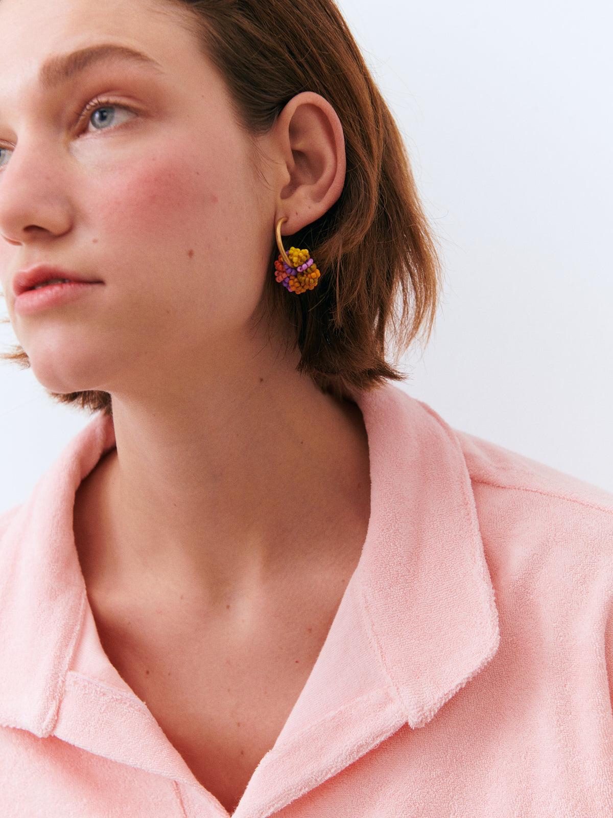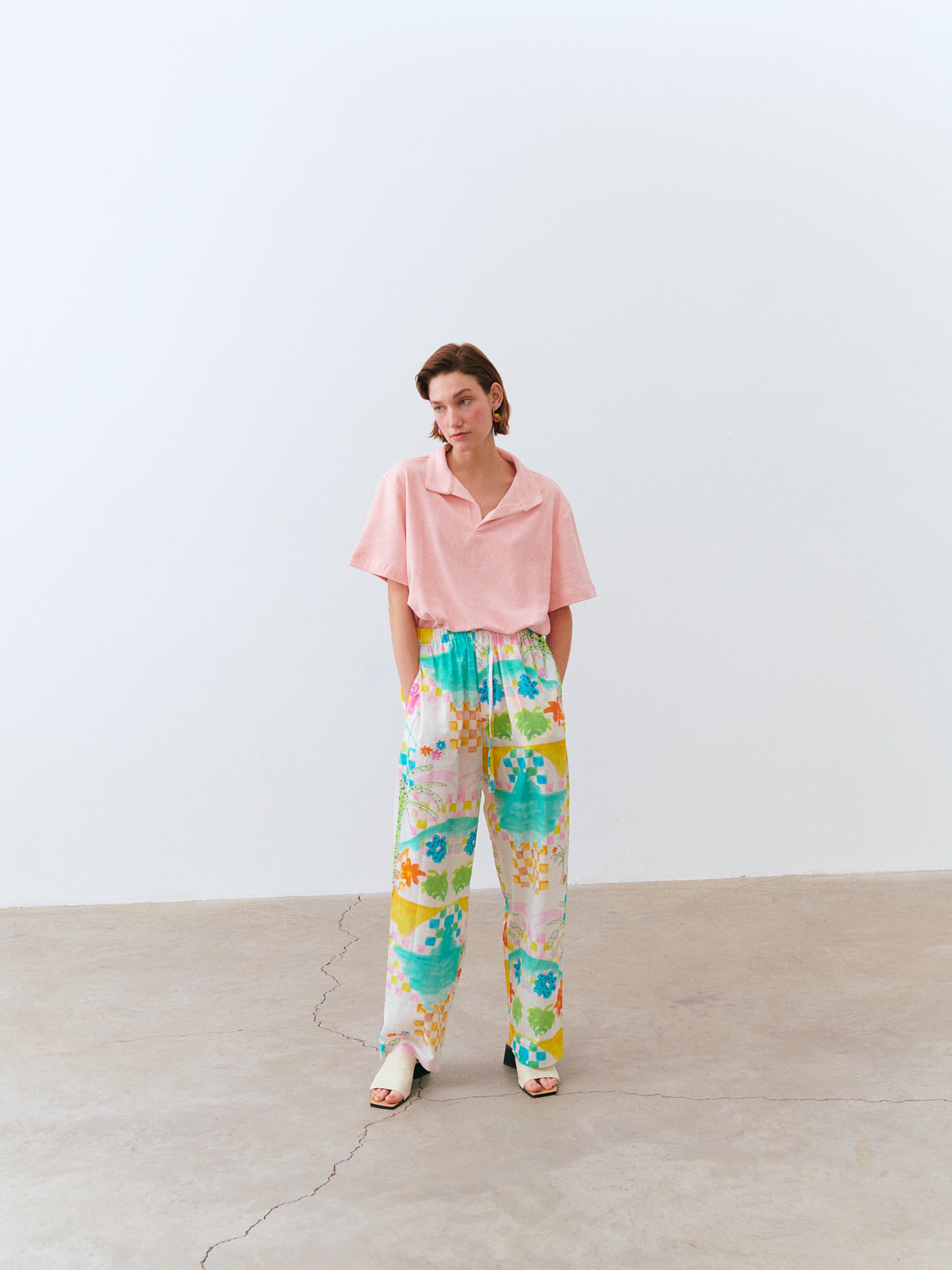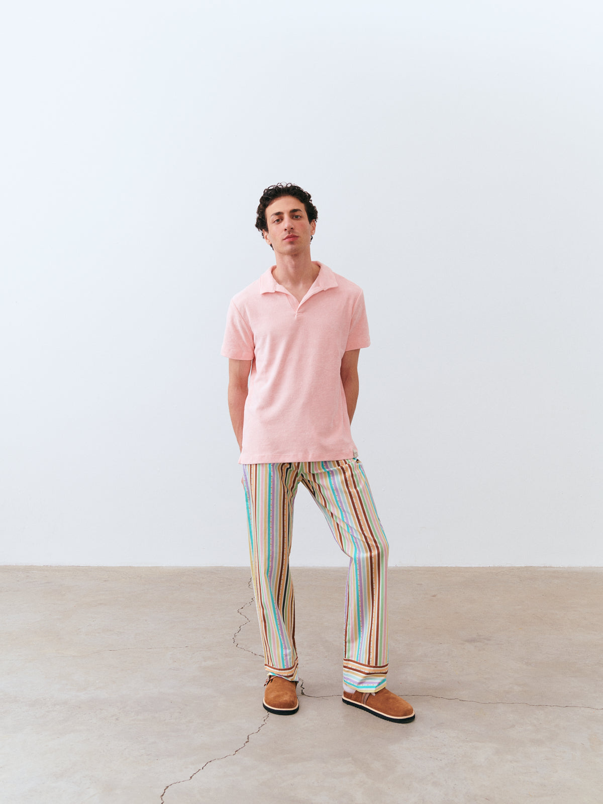 Super soft towelling fabric, V shaped collar, short-sleeve t-shirt