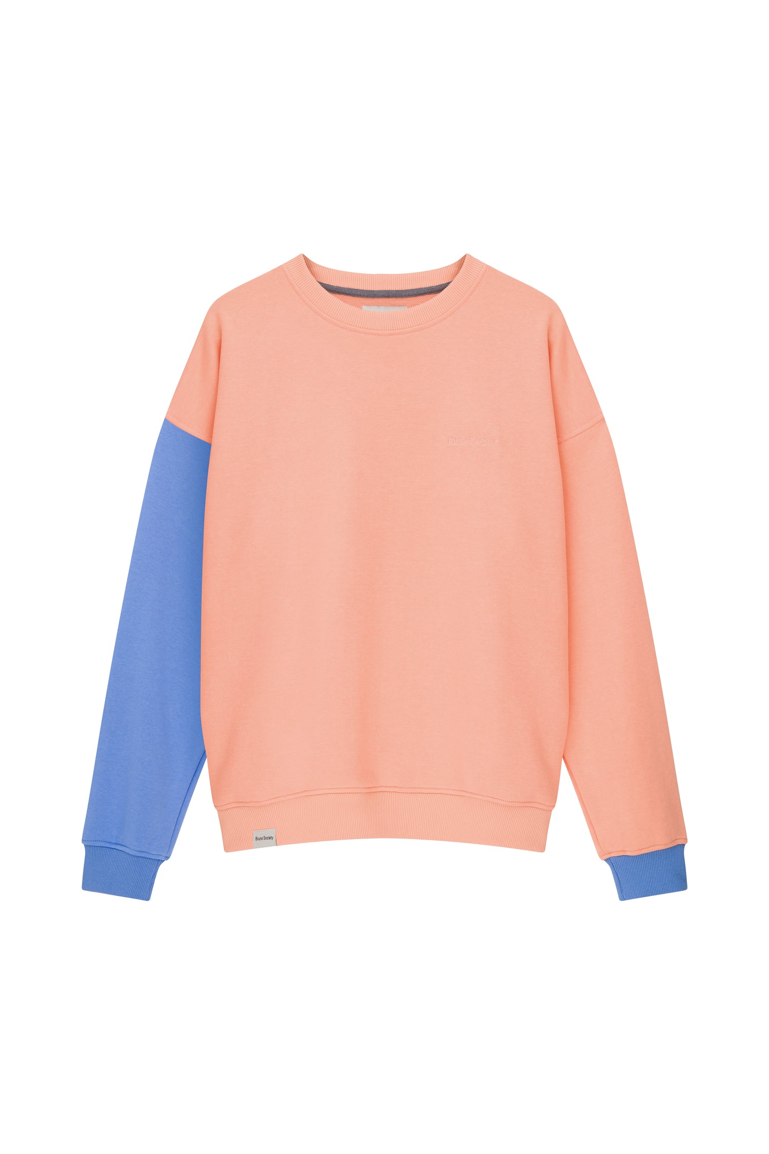 A unisex, relaxed-fit sweatshirt made from soft triple-thread fabric, featuring a double-contrast color design.