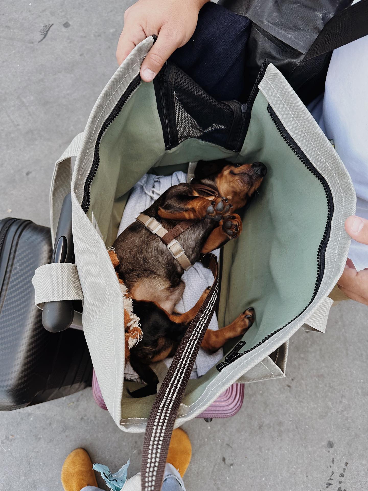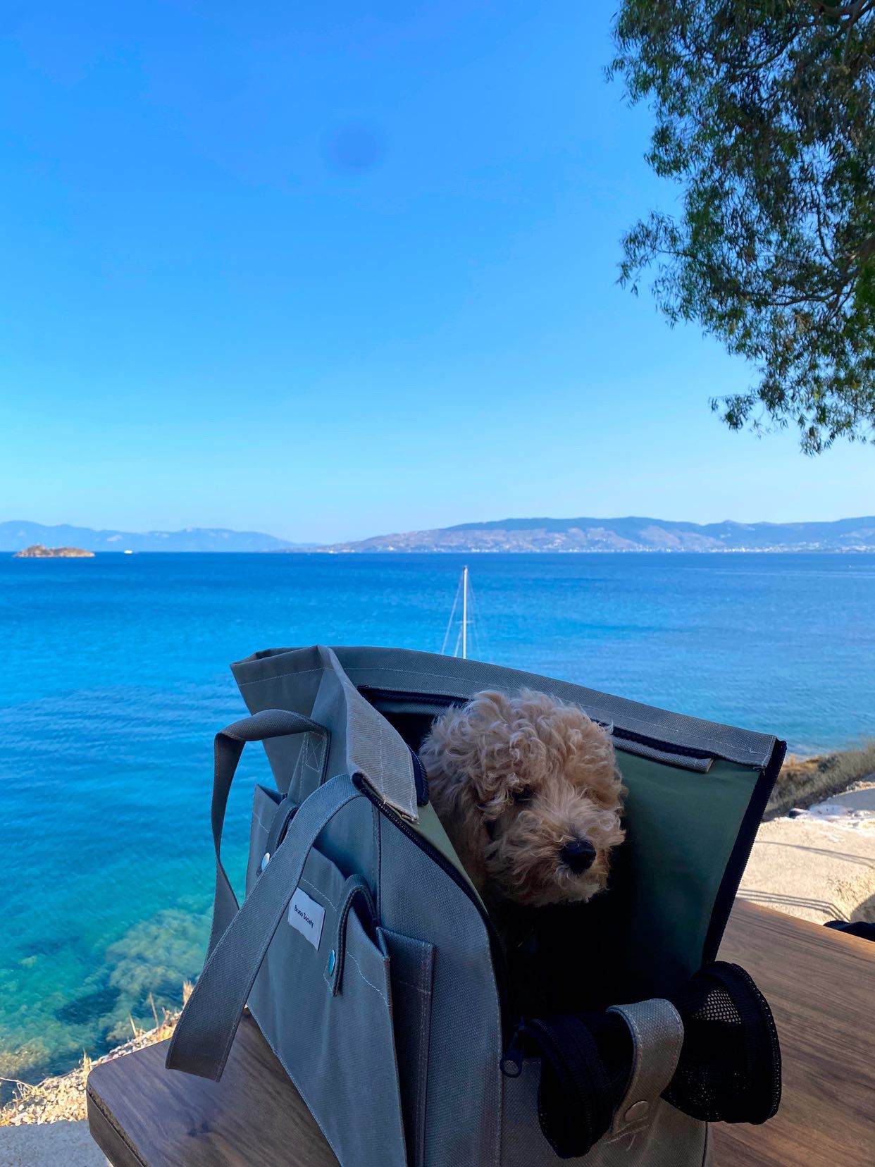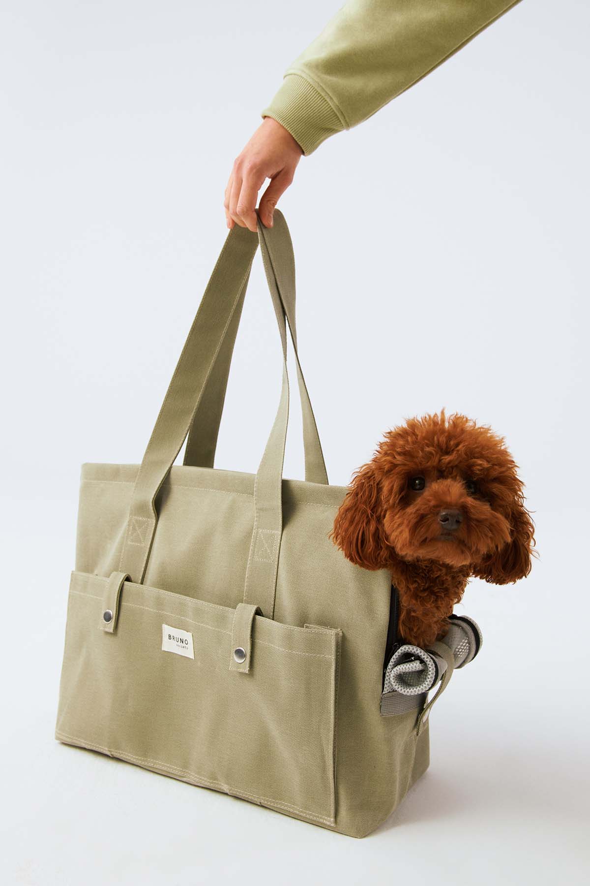 100% cotton canvas body, water resistant softshell lining, zippable net window for extra comfort, interior leash clip for added security, large pocket with snap buttons for extra storage, handmade carrier bag