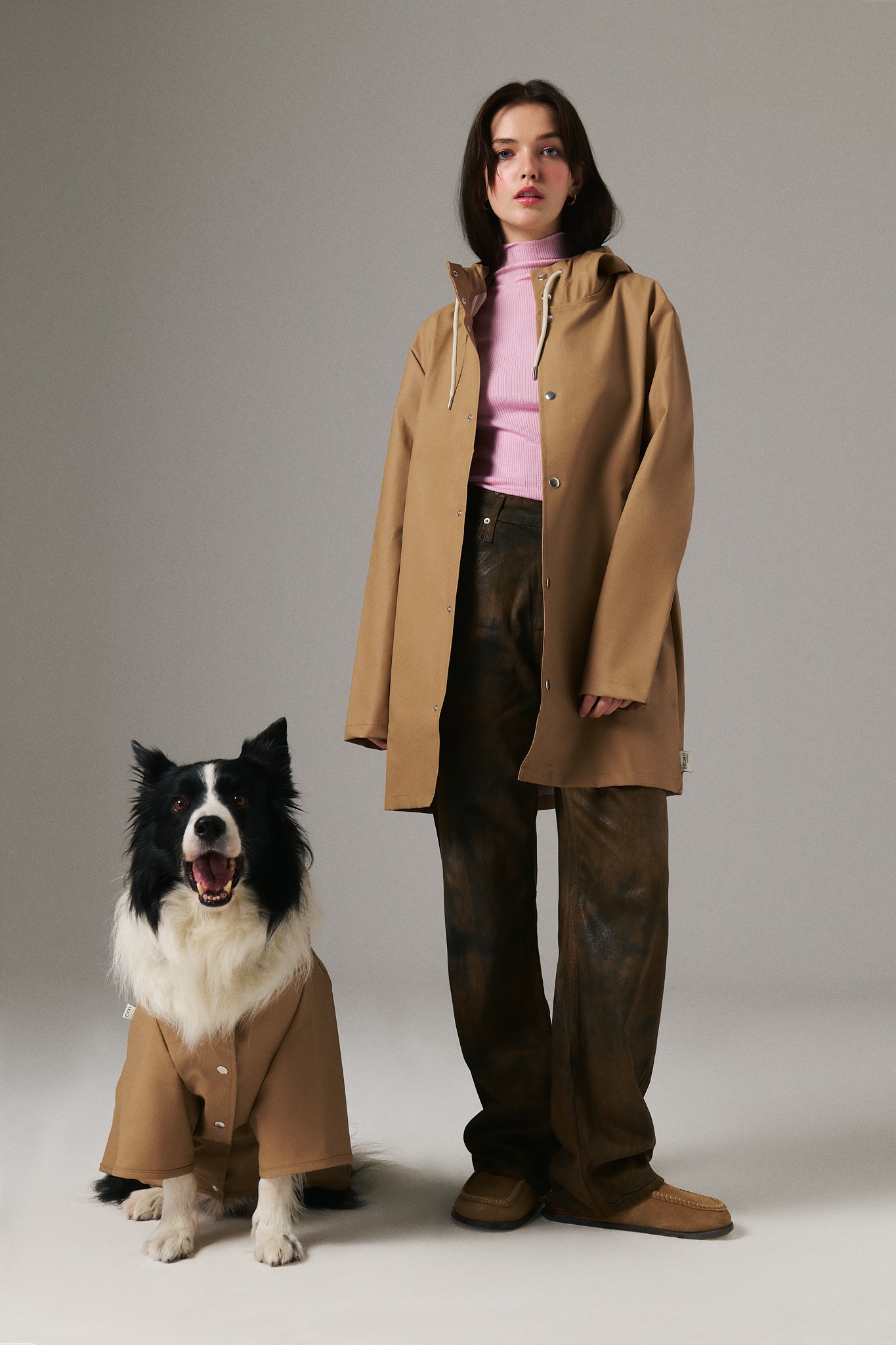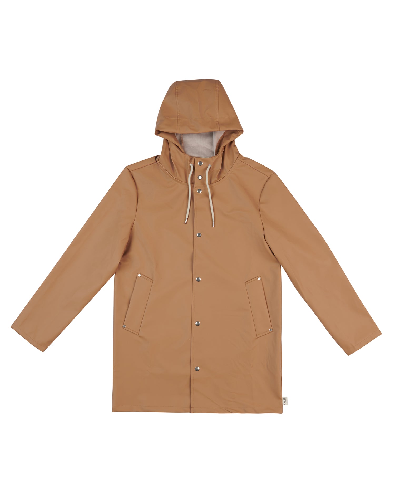 Water-resistant lightweight fabric with a matte and smooth finish, ventilation under the arm, adjustable hood with drawstring & practical cap function, front placket with snap buttons, diagonal front pockets, casual unlined unisex casual fit raincoat