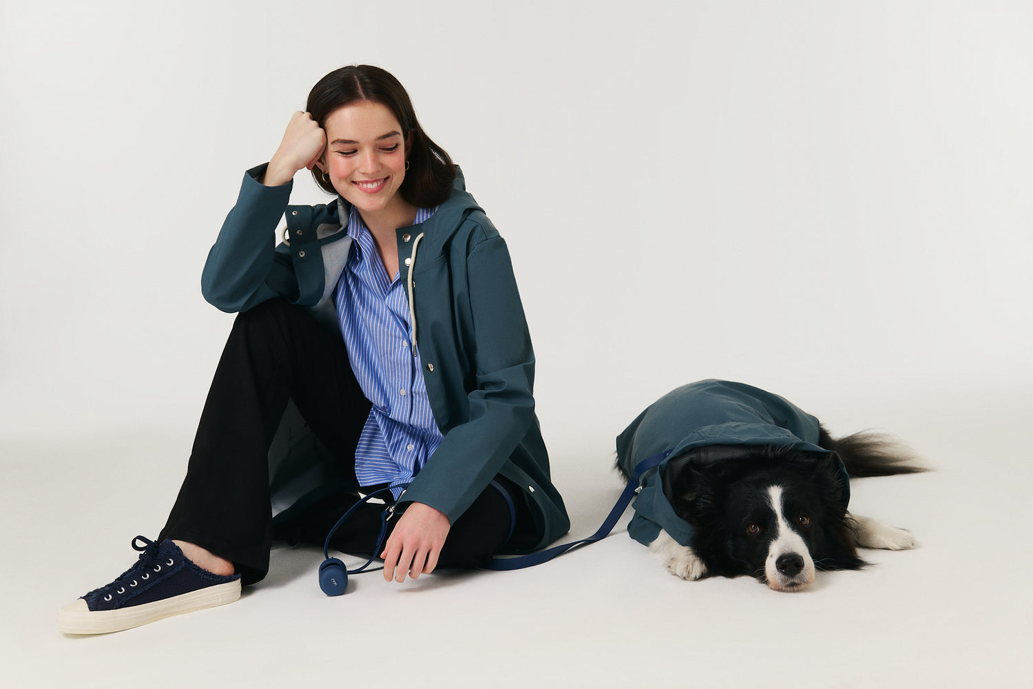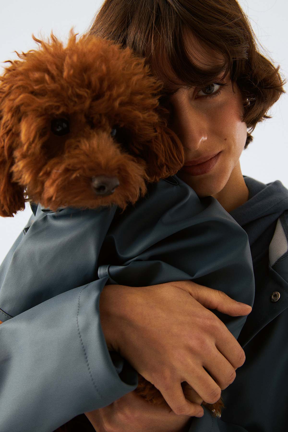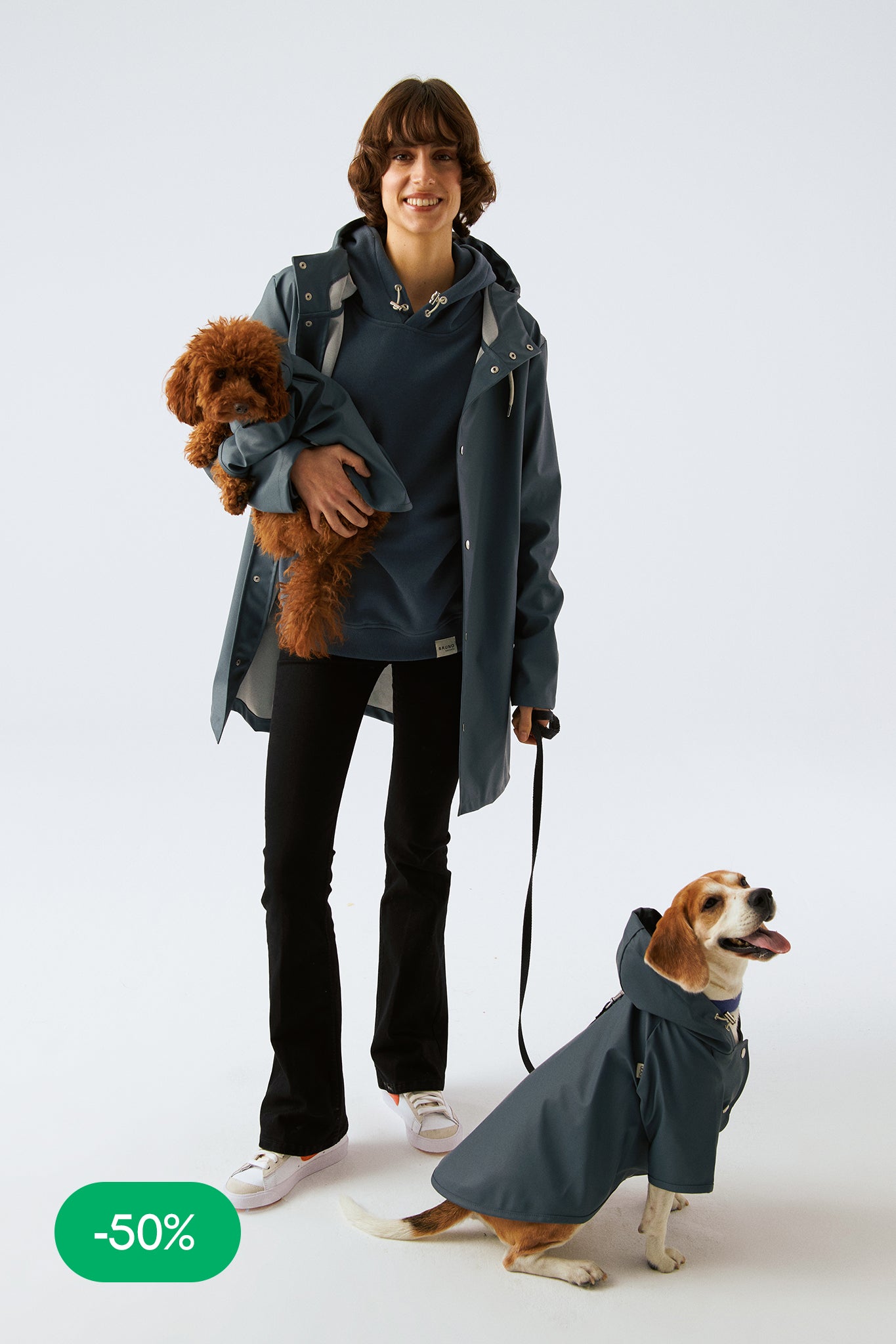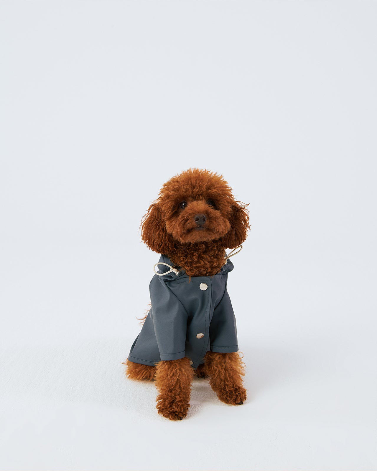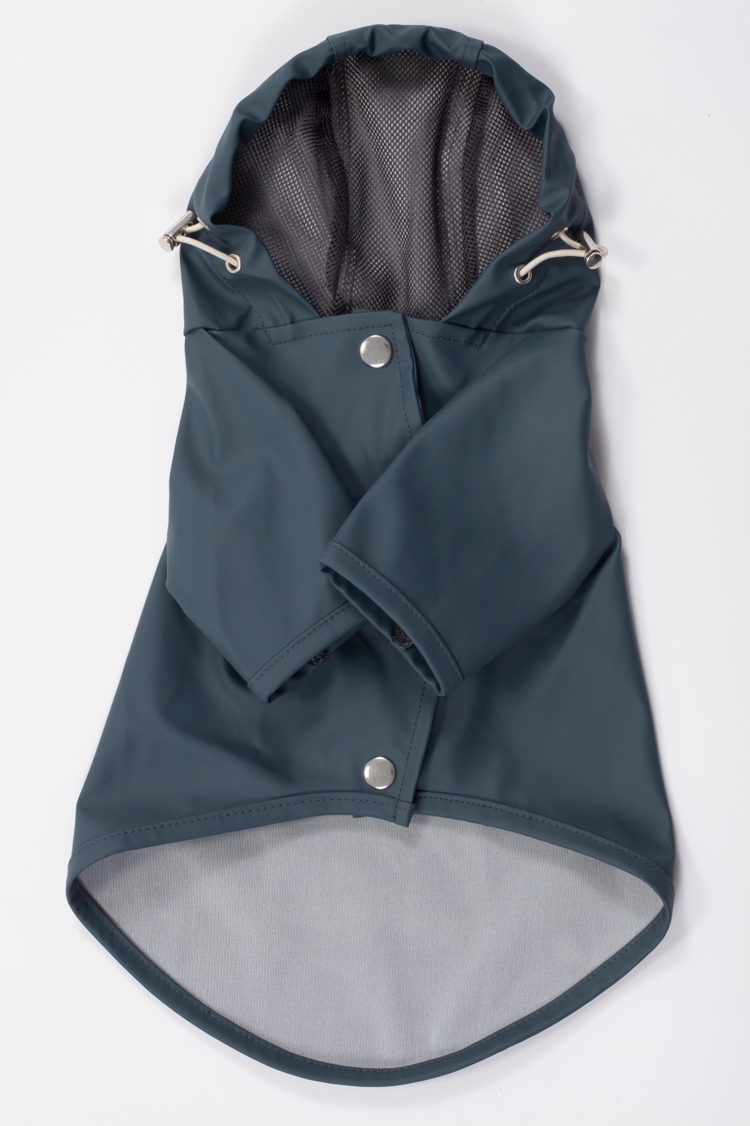 Köpek: Mat ve pürüzsüz bir yüzeye sahip suya dayanıklı hafif kumaştan üretilmiş, kapüşonu lastik ve stoperle ayarlanabilen, önü çıtçıtlı, kolay ve rahat yürüyüşler için tasma deliği bulunan astarsız rahat kesim yağmurluk