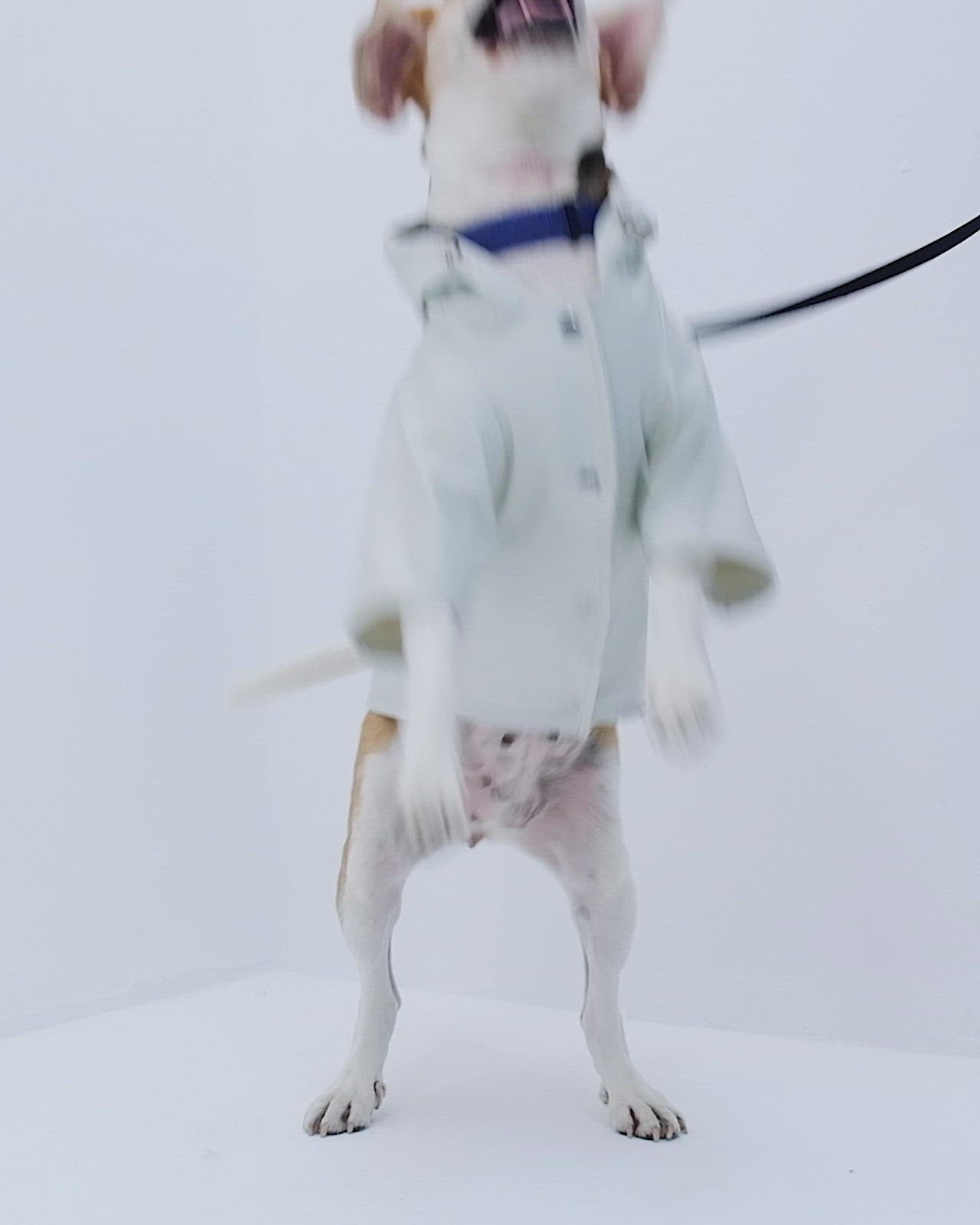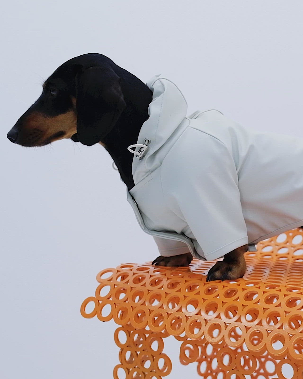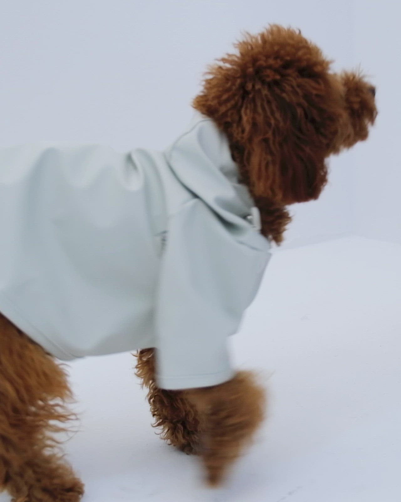 Mat ve pürüzsüz bir yüzeye sahip suya dayanıklı hafif kumaştan üretilmiş, kapüşonu lastik ve stoperle ayarlanabilen, önü çıtçıtlı, kolay ve rahat yürüyüşler için tasma deliği bulunan astarsız rahat kesim köpek yağmurluk